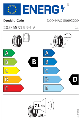 Il pneumatico ha le seguenti caratteristiche in base all'etichetta europea: