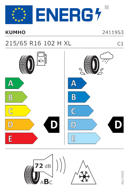 Il pneumatico ha le seguenti caratteristiche in base all'etichetta europea: