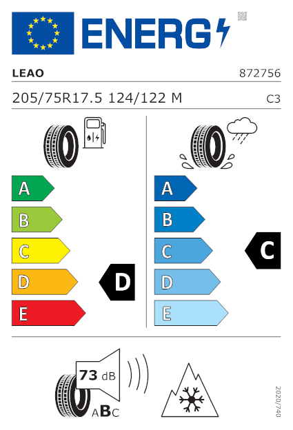Il pneumatico ha le seguenti caratteristiche in base all'etichetta europea:
