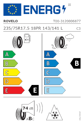 Il pneumatico ha le seguenti caratteristiche in base all'etichetta europea: